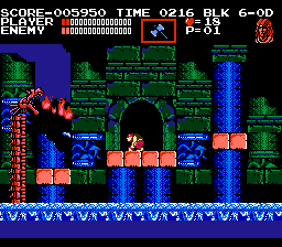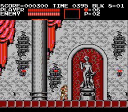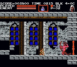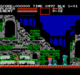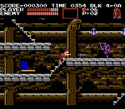 Konami in Castlevania III: Dracula's Curse ushers the return of the series' classic formula after its short vacation in deference to Simon's Quest's adventure-RPG escapades. That is, we're again presented the tried-and-tested style of stage-by-stage action. Though, Dracula's Curse is anything but content and complacent, and the objective's description is hardly fitting: You must take take control of Trevor Belmont and guide him through a number of stages--each crammed with enemies, loaded with traps, and resided over by boss guardians--to infiltrate the ancient Castlevania, to arrive at the castle keep, and to destroy the confident Count Dracula. The game's greatness is defined by how you accomplish this task: Available to Trevor are four possible routes, each with an unassigned but noticeable difficulty level, that take him across the countryside and eventually through Castlevania. On any path, you can meet up with at least one ally that has been assigned to it, a system that offers multiple replayability combinations in terms of paths and allies; though, you can only have one ally at a given time. Once you clear the game, you can partake in a second, tougher quest with the assistance of the ally, if any, with whom you defeated Dracula (though, you can't swap allies the second time through). It's in this harder quest where you'll run across some enemies you hadn't seen the first time around. |
