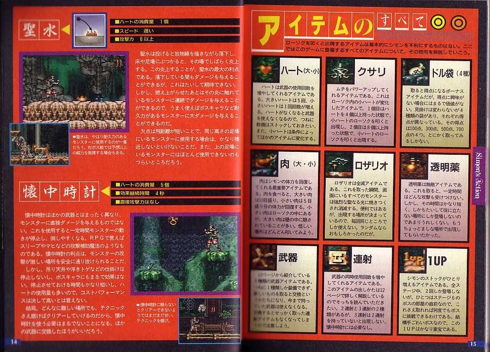 Popular Japanese gaming magazine Famitsu created for Akumajou Dracula (or Super Castlevania IV, for those confused by the reused title) a guidebook under its line of print known obviously as Famitsu Guide Book. (All images have been contributed by Luv.)