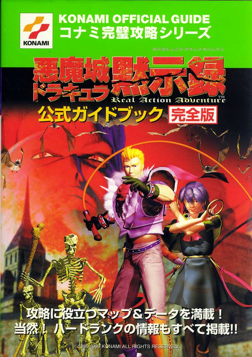 This is the Futabasya Official Guide for Akumajou Dracula Mokushiroku. Featured are moody artwork, detailed overhead maps, and character profiles. All scans were submitted by JPCVFAN.