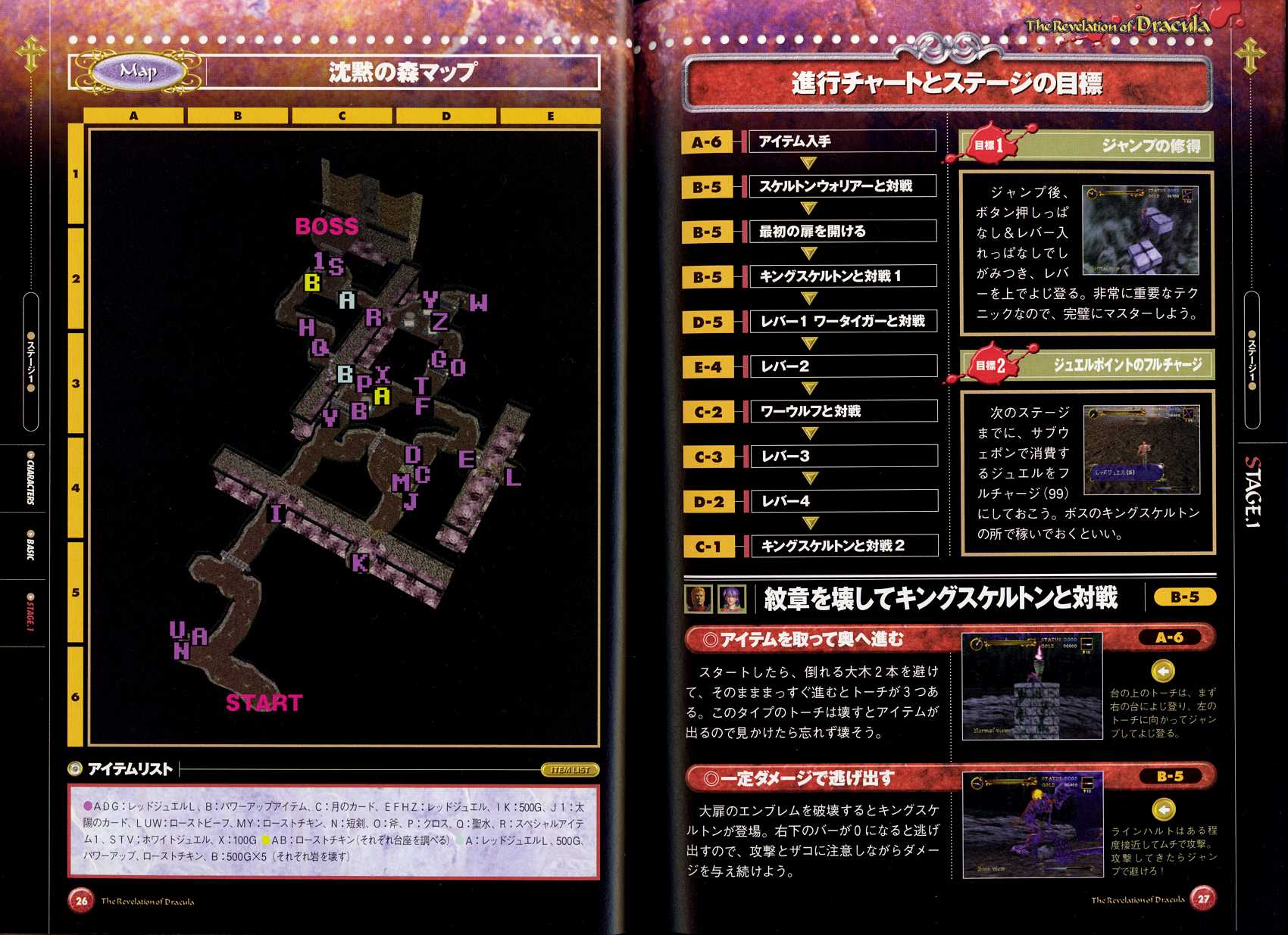 This is the NTT-PUB Official Guide for Akumajou Dracula Mokushiroku. Colorful artwork, 3D maps and boss strategies are some of the things you can expect to see. All scans were submitted by JPCVFAN.