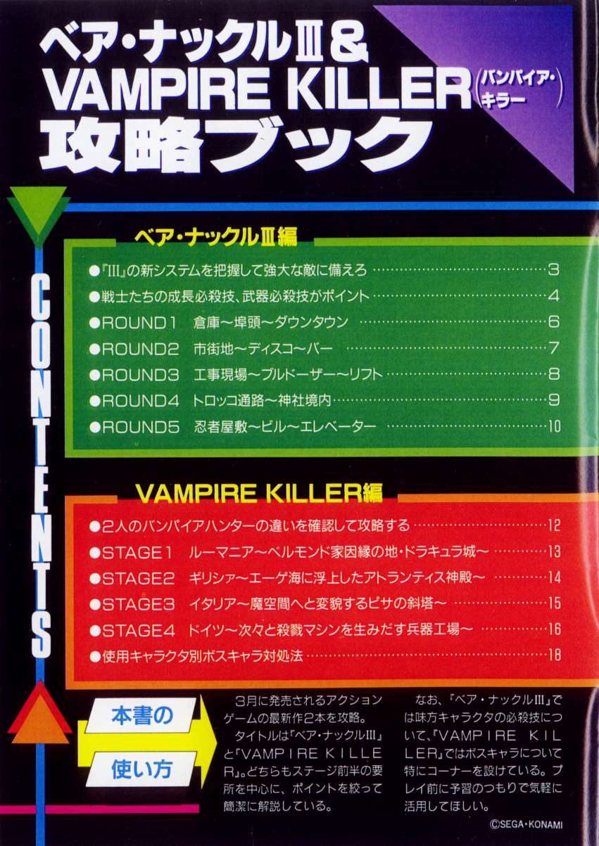 Wholly devoted to the Sega Megadrive was enthusiast magazine MegaDriveFAN, a Japanese outlet. One issue in particular featured an appendix that featured dual coverage of Bare Knuckle III and Vampire Killer, whose stages are overviewed over the course of eight pages. All scans were submitted by Balsamicosu.