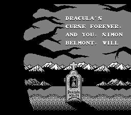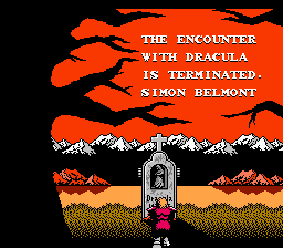 This ending, according to the Japanese version, is the "best" one available, earned for completing it in under eight game days. Simon triumphs over Dracula and stares down the headstone under which he rests. Exhausted, Simon kneels down.