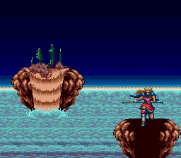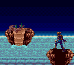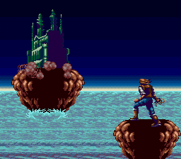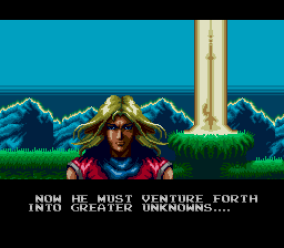 Eric stands on a nearby mountain cliff while the castle crumbles to the ground (oy). You're again informed that you've foiled evil's attempt to raise the Count. It then tells you that Eric has fulfilled his destiny and will move on to other challenges (ala Ryu in Street Fighter 2 and Kain in Final Fantasy 2). These are the exact words: