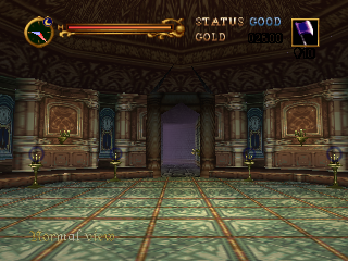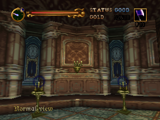 | It was in Symphony of the Night's huge Marble Gallery where the Room of Clocks was first encountered by Alucard. Fifty years earlier, Juste discovered the same room in the lower portion of the clock tower, which perhaps served as its main entryway. The location of the room in both games is similar, but in Symphony, it appears that the last room of the Marble Gallery and the whole Outer Wall section winds up replacing a leg of the clock tower. Despite their placement, the design detail is as close as the games' artists could get it. When Cornell and later Reinhardt and Carrie ventured through the castle, they passed into the same room from the rightmost towers, it directly preceding the clock tower as it had in Harmony. If you envision Symphony and Harmony's clock rooms as rounded, as in three-dimensional, you can envision the N64 clock room much better. |