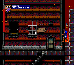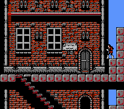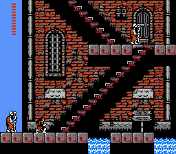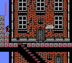 | Unlike in Simon's Quest, you can't enter any of the buildings (save for the alternate path), but you can still read the signs, and you can now whip the lanterns that hang outside each building. |