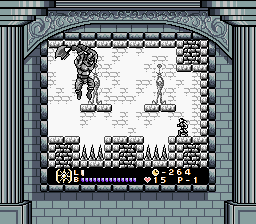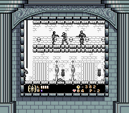 | This part is less noticeable, but the giant stone wall, guarded by two skeletons, was the foundation of Jova--sort of an early construction site. In Dracula's Curse, this leads to a small chapel area and then exits back into the town. This chapel could very well be the innards of the Church of Jova that will soon stand in Simon's Quest. |