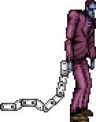 to fall from the ceiling, and he keeps flailing his chains wildly, about half