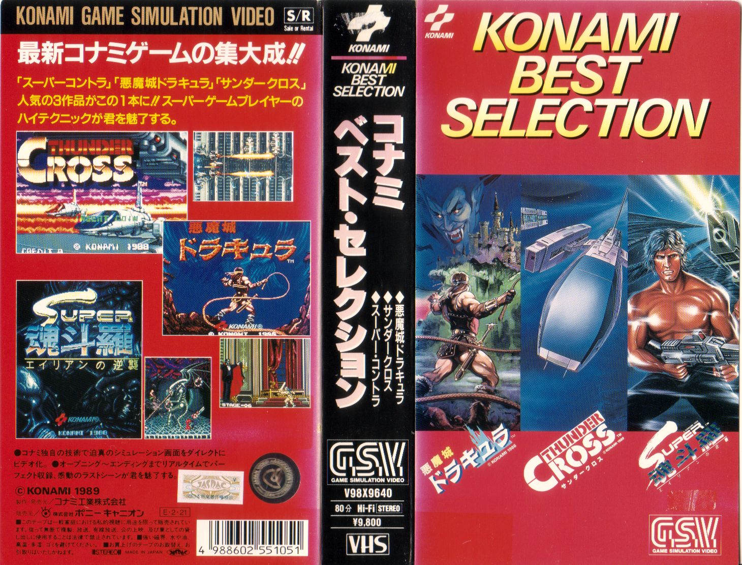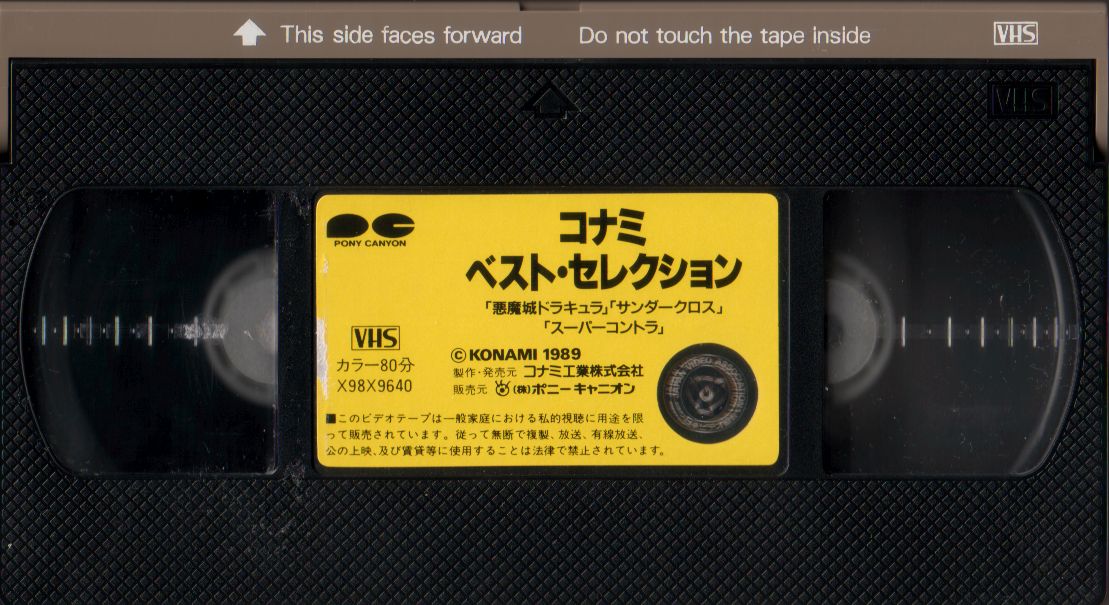 Konami in 1989 released in Japan a video series called Konami Best Selection, which offered viewers helpful tips and information pertaining to its arcade and console games. This edition covers three arcade titles: Thunder Cross, Super Contra and Haunted Castle. The scans for the video and its casing were provided by Protogem.
