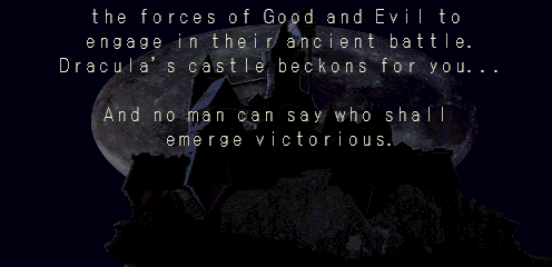 Taking us back to the time of Richter's last adventure, Dracula's castle looms high up in the sky, guarded on all sides by the surrounding sea. The fog looming over the horizon tells of a great battle within Dracula's Keep.