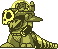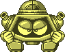 He may look like Quick Man, but it certainly doesn't fight like him. In fact, he's not much of an enemy. He calls upon the use of his big drill-like pogo stick then jumps towards the spot where Mega Man stands, proceeding to drill in that area. If he misses, which he usually does, he leaves himself wide open for attacks. His head is his weak spot.