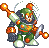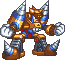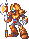 King allegedly stole all of Dr. Wily's robots, using them to do his own bidding. After destroying Proto Man, he made it personal with Mega Man. When encountered, he'll use his shield to channel attacks and use them to shoot out energy beams. When Proto Man intervenes, he'll sacrifice himself to take out King's shield. Shieldless, King will jump back and forth, using his big axe to try to chop Mega Man in half. When defeated, Wily will appear, revealing his plot; also, he'll buy King time as he powers him up.