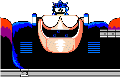 Now Wily's firmly in control. Gamma will now spit out little plate-shape projectiles, them both quick and accurate. Mega Man will have to blast the little bubble containing Wily to damage him. To stop Mega Man quickly, its spike-lined arm will try to strike him every so often. It could be a quick KO if he's not careful; you'll have to use that arm to jump up to the high platforms, in order to get in a clean shot with the right weapon.