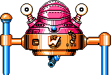 DL #023: His attack style is such that he only fights in rooms with little space to maneuver. When he clicks his energy-conducting arms together, it creates a powerful spark that does either of two things: (1) Forms a big spark, which homes-in on Mega Man, or (2) creates a big spark that breaks into an 8-piece spread shot.