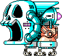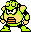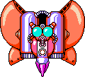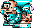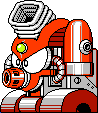 This is a bigger version of a regular blast cannon. It has two attacks: (1) It shoots big, circular projectiles from its snout, and (2) It loops fireballs from the cannon on top of its head. Mega Man has to find a way to dodge both of these attacks while trying to hit the little green sphere above its eyes.