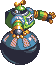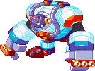 DL #062: This absolutely huge boss represents a big obstacle. His most frequent attack is to lunge at Mega Man, sliding across the ground until he hits a wall. If angered, he'll pound on the ground, causing icebergs to fall from the ceiling; he'll then lunge and slide, clearing the area. His other attacks include pushing big ice blocks in Mega Man's direction.