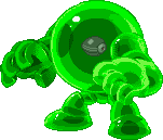 Using the same conceptual plan as used in the creation of the Yellow Devil, Wily created this. To damage him, Mega Man has to break through the layers between its eye until it's exposed. At first, it transports by melting himself into liquid and slipping into the grates in the floor, popping up somewhere else. His attacks are as follows: (1) His eye will descend from the ceiling, commanding the gel to form into spikes and stab upward, and (2) The eye will quickly fly over a small area and command a wave of gel. When his energy is low, he'll use the familiar attack: Break apart and fly across the screen piece by piece.