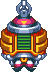 Yep--another teleporting ship. While doing the usual teleporting, he'll unleash 3 different kinds of attacks: (1) The 4-circle chasing projectiles (last seen in Mega Man 7), 4 bombs that slowly follow Mega Man around, and (3) An expanding-range circular spread shot. The capsule containing Wily is the only vulnerable area.