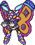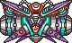 Initially, you'll face a larvae that swings back and forth by the cable attaching it to the ceiling. Swinging back and forth, it loops out a clutter of debris. When it stops swinging, it drops to the ground and moves around the walls, ceiling and floor, sending debris flying everywhere. When damaged enough, it leaves and comes back as the guy above. When morphed, he'll fly overhead, dropping deadly powder on X; also, he'll use a magnetic force to hurt X if he's standing nearby.