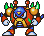 To begin the battle, he'll submerge in the chamber's swamp-like liquid. One or two spinning blades will emerge from the liquid, circling the room, keeping X busy while he plans his next attack. When he pops up, he'll try to catch X in his jaw, draining X's energy. He can also spin himself like a drill, dashing quickly across the room. Finally, when he gets mad, he'll change colors and begin spitting out small fireballs, three at a time.