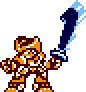 Zain was one of Techno's Maverick buddies. Because of his arrogance, he couldn't wait to be loaded into the system to face X. His attack pattern didn't include a whole lot of variety, but it was effective nonetheless. He'll start out by taking long jumps, swinging his huge blade each time; this takes up a lot of space, leaving little room to move. That's about it until you run into him again later. One thing changes at that time: After three or four jumps, he'll back into a corner and spin wildly with his sword. He'll then repeat this pattern.