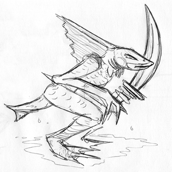 | "cv2brmerman- The Merman in Belmont's Revenge brandishes a fierce blade. Winter 200V, I think..." |