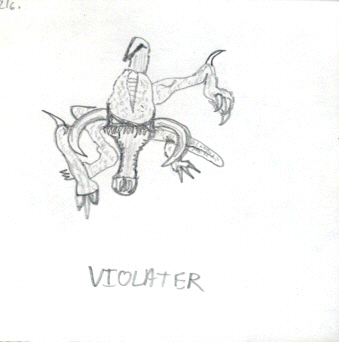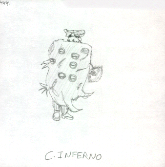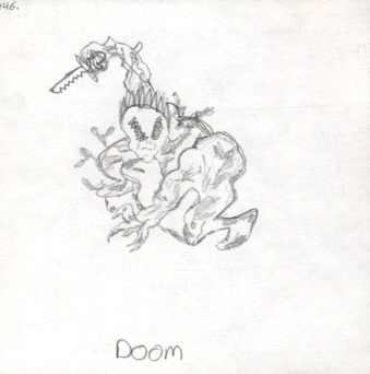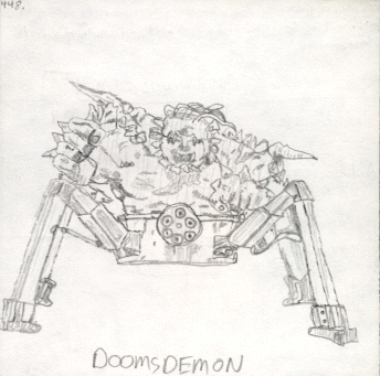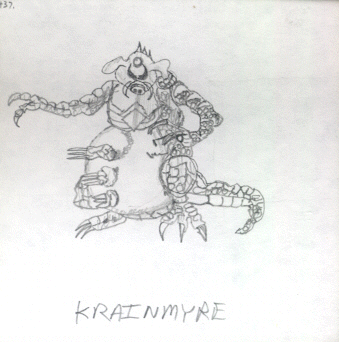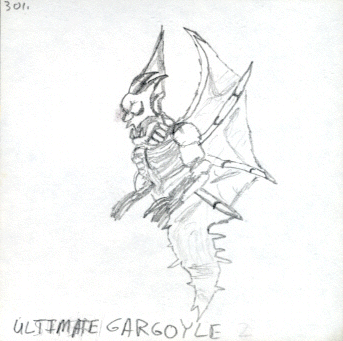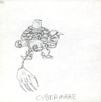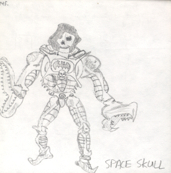 When Kain combined the supreme evils into one body, he unknowingly combined scores of universes together. Already-evil beings became even more evil by the splicing effect it had. This happened because, externally, around 1994, I was running out of monsters to draw, so this allowed me to continue the series through the "amalgam" idea. I paired together several evils and thought about how they'd look if I were to combine their traits; I even created a whole new world to which would be home to these fused-together evils. Below are some of those ideas, with the descriptions I had given them back then.