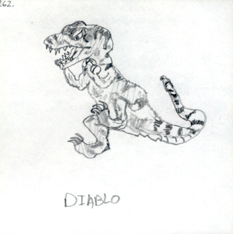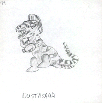 | This dinosaur was given a computer chip for a brain. So besides being an overwhelming adversary, it can also become smarter. It can even fire scrap metal from its implanted arm cannon. |