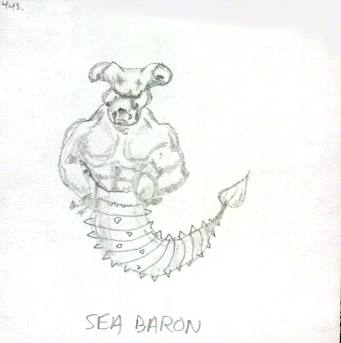 | This evil baron roams the sea endlessly, looking for sea-travelers to incur his wrath upon. Its most deadly power is its ability to breath green fireballs. |
