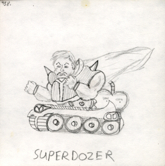 | An experimented-upon man was grown into a machine, and he's not happy about it. Superdozer is a moving military base, and it excels in battle both on the ground and in the air. |