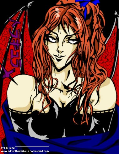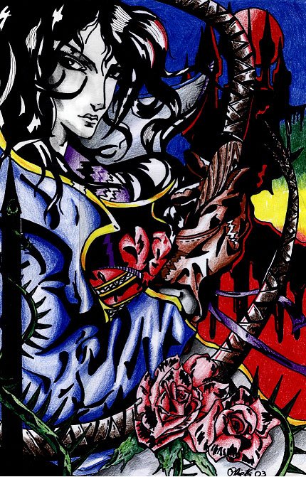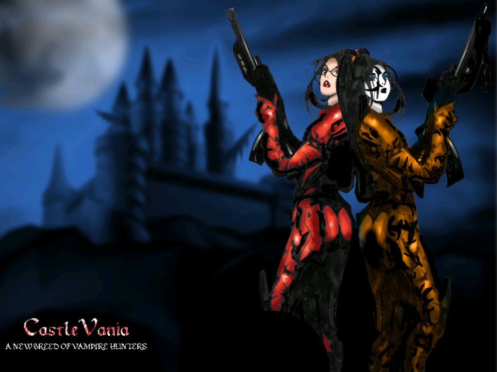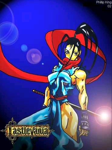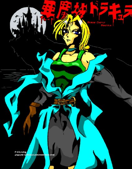 From the artist himself: "The vampire hunter in this picture (above) is what I proposed Adrian's (Alucard's) daughter would look like, Maria Renard being the mother possibly...I dunno. I named her Olivia Eliza Tepes."