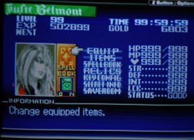This page is cognizant of both methods of achievement. It's here where you'll find high scores for titles like Vampire Killer, Super Castlevania IV and their ilk plus high-level acumen for titles like Symphony and Circle of the Moon. The top three scores, in either category, will be awarded gold, silver and bronze placement, with runner-ups listed below in order of rank. In the case of high-level acumen, where "Level 99" will no doubt be the norm, rank will be awarded by overall quality of stats (time spent, strength and defense, for instance); so, therein, having the most experience doesn't guarantee better placement. In either case, being the first to max out the system to its natural limit (posting a score of 9,999,999 on a seven-digit display, for example) will earn the user all-time cemented status.