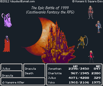 | * The Final Fantasy - Operation: Demon Castle Dracula album was inspired by memories of my first time playing Castlevania: Aria of Sorrow on a stormy day in 2010 and of my first time playing Final Fantasy games in recent times. |