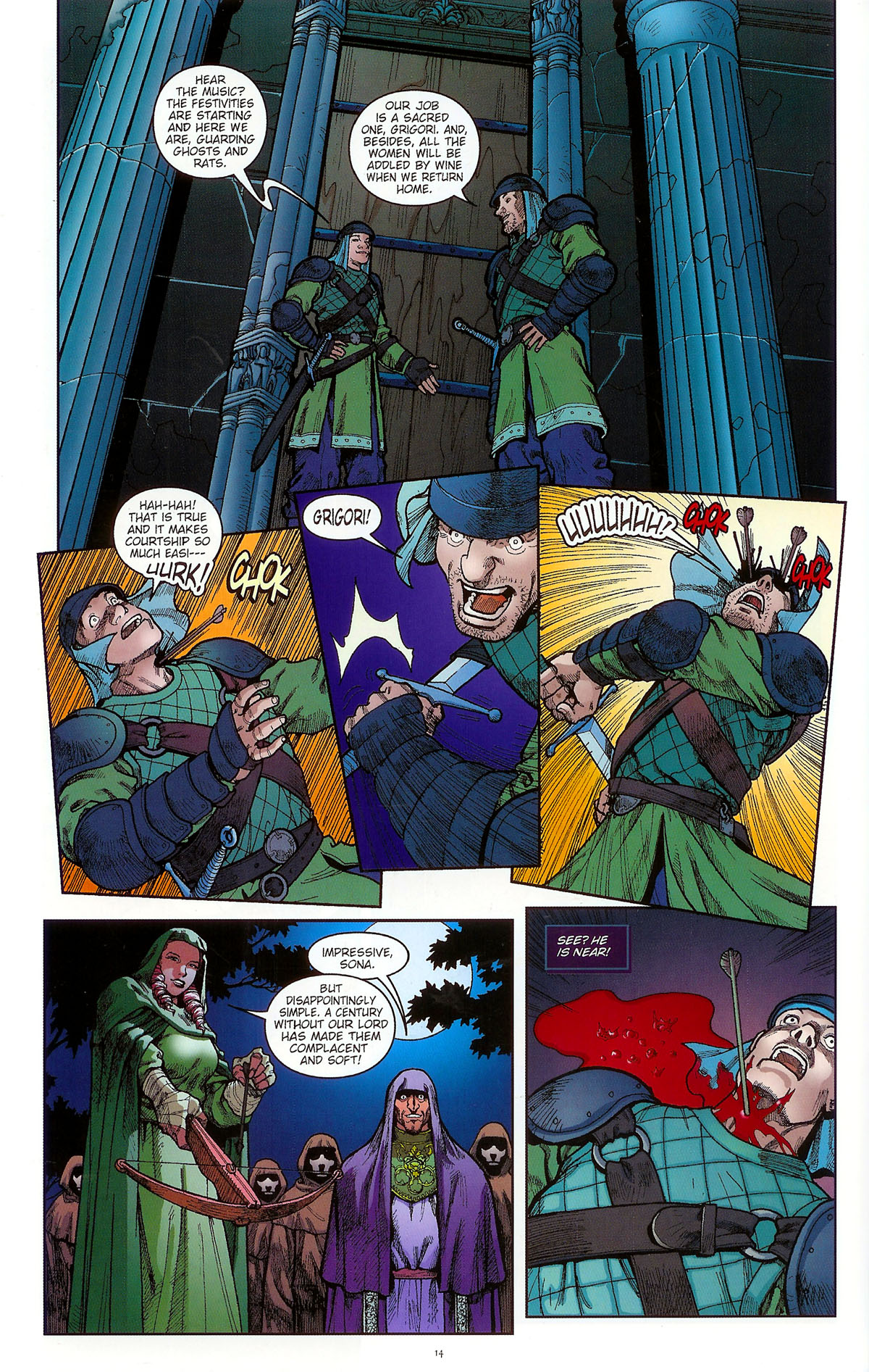 So. After nearly 20 years of being a video game mainstay, the Castlevania series finally get its first official state-side comic series. And the honors are done by adaptation veterans, IDW. These comics are pretty hit or miss, although lately they've really been shining. Still, Castlevania as a series has a lot of promise while having just as many issues. For starters, the back story is a bit muddled (although if you can sort it out really shines,) and the publishers don't make it any easier on themselves by focusing in on an obscure character like Christopher Belmont (although a comic adaptation for Belmont's Revenge would be too hot to handle.) Still, Dracula is always fun in comics so it's at least a good starting point. And despite some missteps on the part of the crew, the comic works for what it is: a fairly predictable, but none the less funny foray in kicking undead butt back to where they came from. Not that we get any butt-kicking here; that'll probably be most in the third and fourth issue in this four-issue limited series. Here, we are introduced to the characters of Christopher Belmont on his afore unmentioned wife, Illyana. Their wedding day is at hand, and poor Christopher has a lot on his mind. As if the upcoming wedding weren't enough to keep him fretting, our hero is always pondering his role in the hero legacy that the Belmont clan has garnered for itself. Meanwhile, some nutty cultists are trying to resurrect Dracula (again) so he can do what he does so well: take over the world. Overall, the story would feel a bit too familiar if the reader weren't aware of what they were getting into already. Christopher is an interesting enough hero, although his cold feet make him come off as a bit of a wuss (even in his dreams, he seems pretty iffy.) This could be translated as the cold footed hero, which is a fine archetype which Adreyko is working with. The scene with Christopher praying for guidance is especially touching, as well as some of the big, bold portraits of what looks like a Simonesque Belmont kicking some Dracula butt. Illyana is just as effective in her role as the damsel-in-distress-to-be, and actually comes off as the most sympathetic character in the book. Of course the real kudos go to the appearance of the Bartley clan, including badass, crossbow wielding Sona who is just as clichéd, but a lot more fun to read than Christopher or Illyana. As far as the art goes, I found myself a bit under whelmed by the work of Su. While perfectly fine for the most part, most of the scenes seemed to carry very little energy and the characters facial features all seemed to be dangerously similar. Many of the architectural designs of the scenes seem appropriately middle age gothic in their construct, and his work with medieval clothing deserves an honorable mention. Still, I hope the dynamism takes a step up once he actually hit Castlevania proper. Despite the fact that nothing much happens in this issue, it achieves its goal of setting up the backbone for the story to come and presents its hero and his love in a sympathetic light. Still, it's a shame that fans have to accept the book as simply the "same old story," instead of being treated to something would have been much more multi-dimensional and involving. Maybe I'll be proven wrong, but thus far it seems we're painting by number, and the numbers were printed pretty big. Still…Sona is awesome. The Grade: B- |