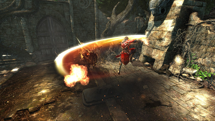 Of greatest relevance to the series' legacy is Lords of Shadow's story, which is not an extension of the existing timeline and instead a reboot--a gaiden-type entry described bluntly by Konami's Dave Cox: "Forget what you know about Castlevania--this is what a next-gen Castlevania game should be." It's MercurySteam's continuing mission, then, to successfully bring the series into the world of three dimensions. Will the high-octane, action-focused formula, with its combo-heavy fighting mechanics, this time nail the concept? Players will find their answer when they take control of Gabriel, our typical series hero; armed with the Combat Cross (a combination of a chain whip and a stabbing weapon), Gabriel seeks revenge for the murdering of his wife at the hands of the very evil that roams the land unabated. Pure of heart, the grieving warrior will attempt to do what few men are brave enough to try: Claim the power of the Lords of Shadow as his own and put a halt to evil's reign. This will undoubtedly entail his scouring the countryside and raiding the haunted Castlevania in search of an ultimate evil (though, we've seen no sign of a main villain or even Dracula, whose absence would certainly cement this "new direction"). Most importantly, we'll discover the true context of the power known as "Lords of Shadow" and what it means to the future of the series.