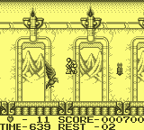 Castlevania II: Belmont's Revenge is the direct sequel to Castlevania: The Adventure and the second of three titles for the classic Game Boy, and it's by far the finest offering of the bunch. Konami's challenge here was to create a game that builds upon Adventure's style of play and actually make it playable while improving upon its many deficiencies. By tweaking the controls, rethinking its strategy in producing an action-adventure platformer, and deferring to common sense and working formulas, it succeeded in finally delivering to the world of portable gaming a true Castlevania title. In short: While Belmont's Revenge looks and plays very similarly to its predecessor, it's a much more improved and polished game. Our hero is Christopher Belmont, who until this game's release had no name or distinction amongst his Belmont brethren. Sixteen years ago, Christopher defeated Dracula in a duel--or so he thought. Dracula lived on and waited until the perfect opportunity revealed itself. The night before Christopher was to hand down the Vampire Killer whip to his son, Soleiyu, who was the next hunter in line, Dracula used his remaining power to possess the offspring and harness the boy's life-force in hope of raising his castle from the underworld and, in effect, goad Christopher into a rematch. In the meantime, four other castles have mysteriously appeared (a cloud castle, a rock castle, a plant castle and a crystal castle), and they present a mystery that must first be solved. So the aging Christopher has no choice but to once again don the battle gear and the whip, vanquish the four castle guardians, save his son, and destroy the Dark Lord before he regains enough power to raise Castlevania from the depths. Christopher's goal is to tackle seven stages of madness in order to reach Count Dracula's domain for the final showdown. The adventure isn't quite so linear: You can choose to play through the initial stages, the four elemental castles, in any order you so please. This is a welcome addition, a nice touch in using a gameplay element as borrowed from the Mega Man series. Once you destroy the four castle guardians, you'll venture into Castlevania, which is the site of the final three stages, and then it's all straightforward through Dracula's house of horrors. You can tell from the story and this execution of it that Konami simply had more fun with the concept. Belmont's Revenge continues the Adventure healing process in the area of gameplay. Christopher starts with the standard leather whip, and he can increase its power by utilizing the crystals earned by whipping candelabras--the first transforms it into a chain whip, and the second allows it to spew fireballs. This time, there is only one instance where the whip regresses, and that's when Christopher makes contact with the projectile attacks of the hand-shaped demons known as Punaguchis. Otherwise, things are this time around a lot more fair. In all its generosity, Konami even saw fit to bless Adventure-scarred yet still hopeful consumers by providing two familiar sub-weapons (the axe and holy water) that Chris can command and power by collecting big and small hearts. Filling out the list of other, more traditionally used magical items are the pot roasts that restore your energy, the coins used to build up your point-total and thus earn extra lives, and the 1-Up symbols that automatically increase your stock. Other issues addressed include the stage design and mechanics therein. While many of Adventure's ideas are recycled here, they're done in a much more realized way. To name a few instances: Where Adventure flooded you with enemies, Belmont's Revenge confines the action and doesn't overwhelm you. Where Adventure frustrated you with jumps dictated by unresponsive controls and bad sprite-detection, Belmont's Revenge gives you wider platforms, better detection, and a decreased amount of wacky jumps. And they also give you two new maneuvers which you can use while climbing ropes: The ability to swing your whip left and right, to fend off enemies as you climb, and the ability to slide down ropes at hyper speeds, which lets you escape from dangerous areas more quickly. While I still prefer stairways to ropes, Konami took what was a nemesis in Adventure and made it second-nature here. What makes the game truly shine is its use of unique ideas in complementing the improved stage design. While there was clearly an earnest attempt to better emulate the titles that it follows, Konami's strategy in taking this route is more akin to Dracula's Curse and Super Castlevania IV: They really want to impress you by showing off what they can do with the hardware. You have your pools of water that reverse their flow as you tread through them; floors that break away as you travel over them; the climbing of spindles created by spiders when they drop down; the negotiating of series of ropes that are wrapped around pairs of spinning gears; rooms that darken when you whip away all of the candelabras contained within; and those instances of having to quickly slide down ropes while spiked surfaces move to and fro all around you. Sometimes it's just the most simple things that separate an effort from the rest of the generic action-platformers, and Belmont's Revenge knows how to do it. Because of their patience and better knowledge of the hardware, they were able to create a graphically superior follow-up to Adventure in regard to speed and in the overall package. While it doesn't have the artistic detail of Adventure, which, granted, was a much shorter game, Belmont's Revenge is a great-looking title. The trick was to provide somewhat-less-detailed backgrounds where the action was most hectic, so as to not overload the processor and slow the game down to a crawl. Everywhere else, in all the right places, they hit the proper notes: Temples dominate the background of the Crystal Castle. Ominous mountains shadow Cloud Castle. Large statues of horse-riding warriors ga