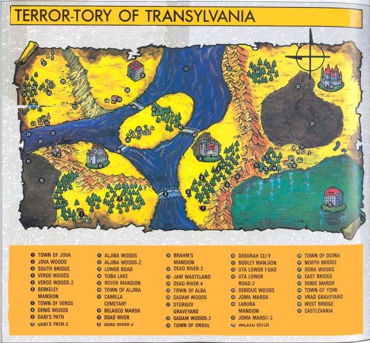 Japanese/European Differences The Japanese version, made for the Famicom Disk System, has a bunch of minor changes. (1) The first is the inclusion of a name-entry option that you can use to save your game into a slot and thus the game's memory (in place of the password system we use). (2) Because it's a disk game for a disk system, there are loading times present when you enter into towns and mansions. (3) The music that guides you along is more digital, faster-paced and higher-toned than what you hear in the NES version. (4) There are deviations on some names; most prominently, Simon's last name, as is usually the case with the family surname, is "Belmondo." Also, Camilla Cemetery is instead called "Carmilla Cemetery." (5) The game's enemy rate is slightly higher than the western version's. (6) There are some sound differences: The glass-shattering effect of holy water doesn't exist, the sound effect assigned to Simon falling into water is altered, the secret-discovering sound plays only when you initially talk to hidden souls and not after, and there are snazzier sounds for the Ferryman's actions and the Deborah Cliff tornado-soul ride. (7) You can continue purchasing garlic and laurels even after your stock is filled. And (8) the mansion music also plays when you're at their outside entrances. In the European version (since the PAL versions tend to come out maybe a year after their western counterparts' releases), the phrase "You now prossess Dracula's [name of part]" has been corrected to where the "prossess" typo is fixed. (Thanks to Danny for this information.) |