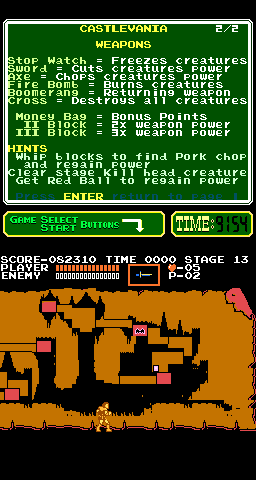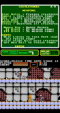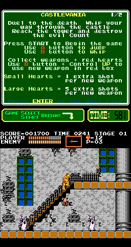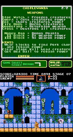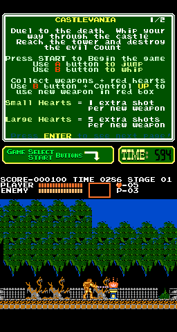 The original Castlevania made an appearance in the arcades as part of Nintendo's Player's Choice series (PlayChoice-10, to be exact). Save for some color differences, and a very poorly done two-page help screen, it was the same game we all know and love.