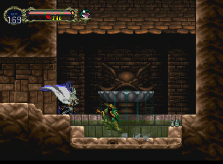 | Limitations: Alucard is very different than you'll remember from his Dracula's Curse stint: He's faster, stronger, more agile and utterly controllable. His rather weak fists act as his main offense, and his normal defense is only standard. Though, he'll collect hundreds of swords, clubs, throwing weapons, armor/gear utilities, etc. that will help to increase all of his attributes exponentially. Both his health and magical power are measured by respective meters, and both can be increased in potency by the gaining of levels and through the location of power-ups. He'll also collect relics that will allow him to change form, from a bat, to a wolf, to a mist cloud; some that afford him special moves, like the double jump; some that conjure familiars; and others that offer unique abilities, such as the power to walk within water. If that's not enough: He can learn several deadly spells and those with the propensity to heal. Finally, Alucard can use nine sub-weapons (six typical and three unique) to supplement his sizable arsenal. |