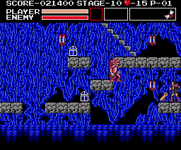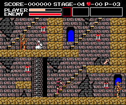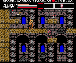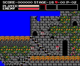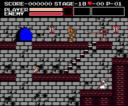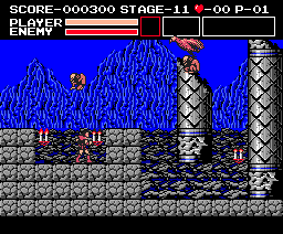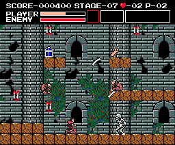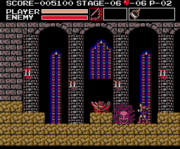 | Limitations: Simon is equal to his Castlevania counterpart in both speed and jumping ability. The only time he can deviate from these attributes is when he's in possession of wings or boots. Simon's main problem is mobility while climbing on stairs--a recurring obstacle--because his weapons don't accommodate. His regular whip is too short-ranged, and it's difficult to make contact with enemies; the morning star is stronger, but it still doesn't cure his range deficiency. His three other equippable weapons, the dagger especially, offer a cure, affording him more range and power; though, two of these weapons can be lost quickly. His sub-weapons will be helpful, too, and both can reside in his inventory at the same time. Depending on the shield equipped, Simon's defense will increase, either by more pain tolerance or by the ability to block enemy projectiles. |