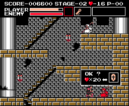 Objective/Overview Vampire Killer is essentially the first series' title as far as its lineage in the western world. Your objective is to clear six screen-by-screen stages, each of which is made up of three separate areas. Hidden in the individual areas are white keys, which you must find if you hope to move on; after locating a key, and solving the puzzle usually entailed, you can enter into the next area and so on until you reach the final area of a stage, a boss room, where you'll face the stage's guardian. While its style of play is wholly original, you will recognize elements anachronistically ripped directly out of the future Simon's Quest for the NES. For easiest reference, it's best to think of Vampire Killer as a hybrid of two future series' styles, an amalgamation of themes seen in Castlevania and Simon's Quest. Once completed, the credits will roll, and you'll restart the game on the first stage for perhaps another go-around; though, this time, the challenge-level will now increase due to a larger selection of minor enemies, which is a trend that future games would follow. For more information, click on "review" at the bottom of the page. |
