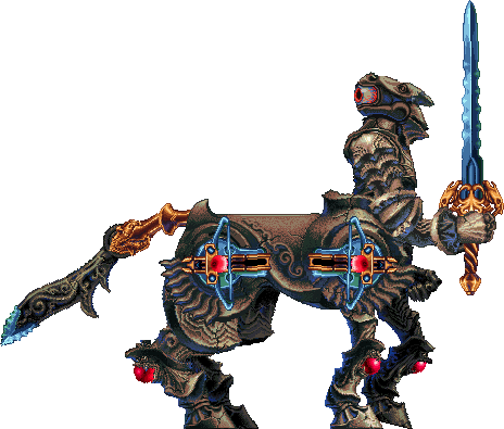 Eligor attempts to disrupt the effort with back kicks, tail-stabs, and arrows