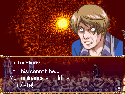 Dmitrii was the third party present when in the Wizardry Lab the cult revealed its intentions to Soma Cruz. In contrast to the fiery Dario, Dmitrii was more reserved in his methodology, and he belittled his ally for judging Soma Cruz strictly on appearance. It was clear that this was uneasy alliance, but no one knew how deep the distrust and resentment ran. Dmitrii's first individual meeting with Soma took place in the Dark Chapel. Soma arrived just in time to witness Dmitrii's slaying of a Malachi, whose power he thus copied. Dmitrii very much wanted Soma to witness this event, to show the youth what was in store. Dmitrii admitted to having no real interest in the cult's activities, for it was all a matter of learning the significance of his own ability--there was a lingering curiosity: "Can I become the Dark Lord?" he wanted to know. It was no matter--Soma won the ensuing battle and seemingly killed Dmitrii, who wanted no pity. As his spirit fade, Soma was overcome by an odd sensation. Had he absorbed a human soul? Much later, in the castle's garden, Soma Cruz was pushed over the edge when it appeared that Celia Fortner had murdered Mina Hakuba; due to this insidious act, Soma's boiling hatred conjured forth chaos energy, which was ready to anoint a new Dark Lord. Genya Arikado arrived just in time to reveal the truth--that the "Mina" killed was actually a doppelganger--and Soma's transformation process was put to a halt thanks to the potency of Mina Hakuba's talisman, which he had equipped earlier. The time was right for Dmitrii to make his grand reemergence, to the shock of everyone. He wasn't defeated by Soma Cruz, they learned; rather, during the battle, he copied Soma's "power of dominance" and took control of Soma's soul, thereafter feigning his defeat. When Soma's emotions shifted due to the sheer anger festered, Dmitrii made good his escape and used his new power to collect the chaos energy; he was now ready to become the new Dark Lord! Though Celia could not have foreseen this turn, she was quite pleased, and with Dmitrii she made an exit to the castle's basement. Soma tracked the duo to the Abyss, where he found Arikado felled. To counter the threat of Arikado's dark power and reverse its flow, Dmitrii sacrificed to the darkness an oblivious Celia. "She wanted to see the Dark Lord, after all," he quipped. The ruthless cad was now ready to take his place in line. Instead, Dmitrii learned of a cold truth--that the power of dominance isn't easily contained. Unlike Soma's, his soul wasn't nearly strong enough to withstand a power that intense. As the helpless Dmitrii succumbed to the pain, all of the souls collected under his watch were released; without a suitable host, they fused together to form a gigantic demon--the Menace! While his participation would end there, Dmitrii's selfish act forged for Soma a most terrifying final foe. Though, with the eventual destruction of the monstrosity, Dmitrii's failure was complete. |