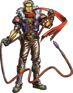 Reinhardt Schneider, another in the line of Belmont descendants, has two games to his credit, both infamous for their unsuccessful foray into the realm of 3D. The first of which is Castlevania 64, the game that was supposed to be Legacy of Darkness before it was chopped up due to deadlines. Reinhardt starts out with the typical leather whip, which can be powered up twice by collecting morning star symbols; however, it only increases in strength rather than changing form. For in-close combat, like Henry, Reinhardt can use a short sword for quick stabs. Furthermore, minus the stopwatch, he commands the familiar mystic sub-weapons.