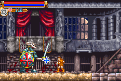 Simon had fulfilled his obligations as far as starring roles went, but he did manage to make a secret appearance in 2002's Castlevania: Harmony of Dissonance, ripped directly out of the original Castlevania. I'll defer to that commentary: "So as the first Belmont introduced to us, his arsenal is prototypical. He starts with the leather whip which can be powered up twice by morning star symbols to become a chain whip and then a more powerful morning star whip." The only difference is that, due of Harmony's stopwatch-less selection, he only gets to command four of the usual mystic weapons.