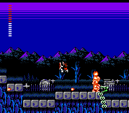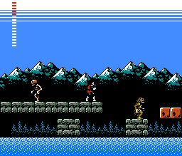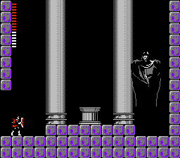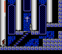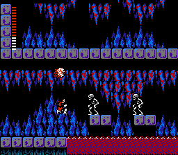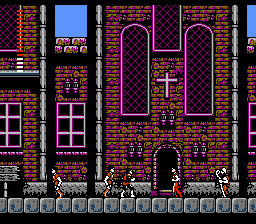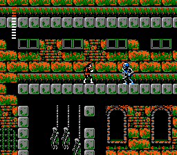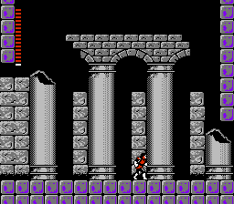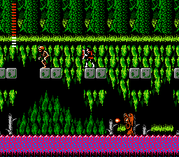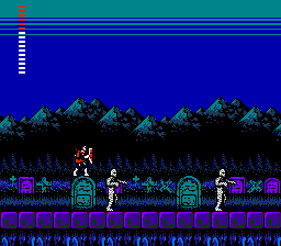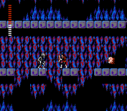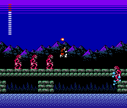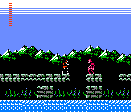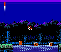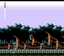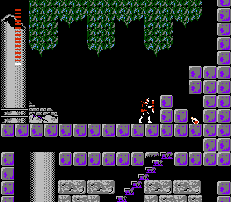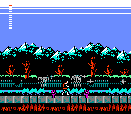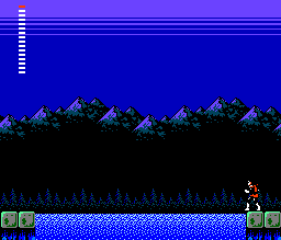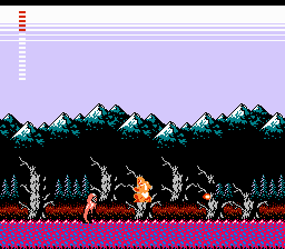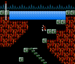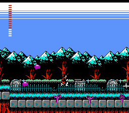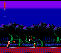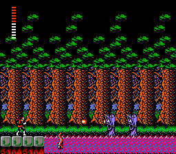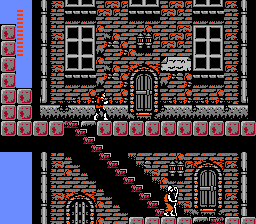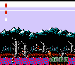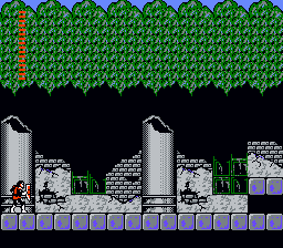 Simon's Quest is nonlinear in nature; it's an RPG-based action-adventure game that invites you to explore its open world rather than conquer successive stages. Along the way, you'll travel through several different area types--"Haunting Scenes," as the game's manual refers to them. Below are descriptions of the different scenes and other related information. To interact with the accompanying land-map images (the map has been cut in two due to limited space), simply point at them. Note that the mansion description speaks of them in general terms, and the individual mansions aren't examined; to get an idea of their respective layouts, you should instead visit page two (accessed via the "Mansions" link at the page's bottom), where sprite maps are available.