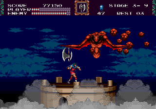 upward with super jumps; he reaches the palace's top, where harpies