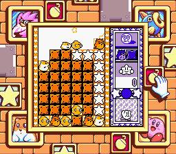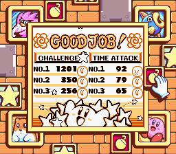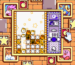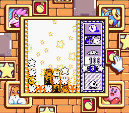 | Home | You like puzzle games ? Then you'll LOVE this game - period ! Go, buy it on the second market - Nuff said ! No ? You want an explaination and some reasons to do that ? OK ! Here we go :) ![]() Safe and collect as many stars as you can, before ... ? What ? ... the game is ended of course :) You can release the stars by creating packs whit two or more of the same type of so called "friends" on both sides of the pack ! This could be done horizontal and vertical. Every other second 2 new guys (or stars or blocks) appears at the top and start falling down onto your stack. The trick is to create chain-reactions to be rewarded with bonus stars, which let the chain reaction go on and raise your score. In higher levels you first have to release the stars from a brown box (which makes the thing alot more challenging) Sadly I can't give you a two player report - but this should be very funny too (maybe the best part of the game). Kirby's Star Stacker is a dangerous game - honestly ! It's one of those rare pearls - which let you forget all your previous intentions. OK mom, I'll start learning really soon, ONLY ONE game - hehehe Forget it - it's like a drug intoxication, you'll act like a dope junkie -Nintendo should have been forced to add a warning sign on the game box - Beware ! HIGHLY ADDICITING ! Now some facts to the game play - you can choose between 4 main variants : 1. Round clear - solve all stages up to Super Hard an be rewarded with the 50 Insane stages ! 2. VS - an option I couldn't use, I didn't found a partner with a GB and the game - 3. Challenge - this mode is similar to the endless Tetris game - collect as many stars as you can, before your stack reached the top - and finally 4. Time Attack : collect as many stars as you can in 3 minutes (my personal record is 145). ![]() Typical for a Nnintendo game are the many rewards - the battery (highscores)- and the absolutely styled game play - which keeps the motivation high ! Typical for a Kirby game are the cute characters and the sound effects ! This my favorite Game Boy game - it never gets boring - I'm sure you will love it too !!! ![]() |