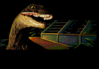 Atmosphere is the name of the game. Whether being in the Jungle, the abandoned electricity station or the visitor's center, the graphics manage to capture the atmosphere of the film. The sprites of the humans are small and just above average, but what catches the eye is, of course, the sprites of the dinosaurs. In the game you will see various species such as the Velociraptor, the Triceratops, the Brachiosaurus and some smaller like Compy and Dilophosaurus. There is also the mighty T-rex, but unfortunately you only get to see its head. The backgrounds, as aforementioned, are detailed and atmospheric.