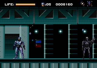 It is basically a platform shoot'em up, quite similar to Contra, but a lot better, with more weapons and more action/adventure elements. However it's a bit simpler than most action adventure games, so you can focus on the action. Robocop can just shoot and jump, but more moves would be unnnecessary. You begin with Robocop's traditional handgun that is effective against weaker enemies but in later levels you acquire several stronger weapons such as grenade-throwers, lazers, rockets etc. You can also find ED-209's weapon. The levels are divided in 'Robocop' levels and in 'Future' levels. In the first 5 levels you fight in the Robocop's universe, and frankly, the levels reminded me of the movies. The first two are the streets of Detroit. The boss here is a Terminator disguised as a human (he is identical to Arnie from the first Terminator film). Then you go to the Delta City construction site. Here you fight the large robot from Robocop 2! Then there is a factory similar to the one of the first Robocop film, where you fight a small tank-robot. The fifth level is the OCP headquarters, where you fight the best boss (in my opinion), ED-209 in its full glory! ED-209 has the best appearance compared in any game that included 'him'. In other games it's too large compared with Robocop (just see Robocop from MAME) or in others simply crude (e.g. Robocop 3). But here is as it should be. After you finish the 5 levels, you go to the future. Here you will travel through several futuristic levels to reach your final goal, Skynet. The bosses here are mostly upgraded Terminators but the boss in level 8 is a large, impressive Robot. The game is a bit challenging, but with practice you will have no problem in finishing it. The disappointment is the game's ending.