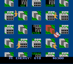 Basically, you run around all over the city, going to buildings, trapping ghosts, driving back to the firehouse, and doing the same thing over and over. And that's it. As you trap ghosts (and depending how well you do it) you earn money, that you can use to buy more equipment for the guys. But what's the point? The only useful items are the Hyper Beam, the Super Trap, and a protection suit that costs more than 100,000 dollars!